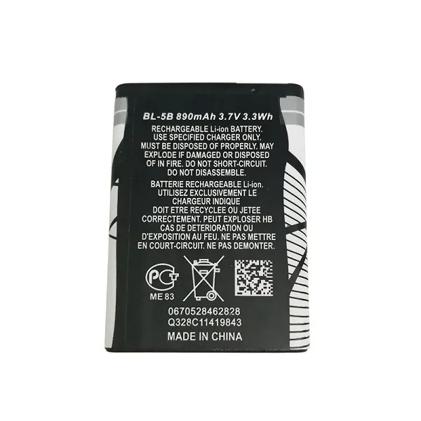 Nokia BL-5B Mobile Phone Battery Battery brand: Nokia Battery model: BL-5B Battery type: Lithium Rated voltage: 3.7v Rated capacity: 890mah Rechargeable: Yes Dimensions: 46x34x5 mm (... Read More
