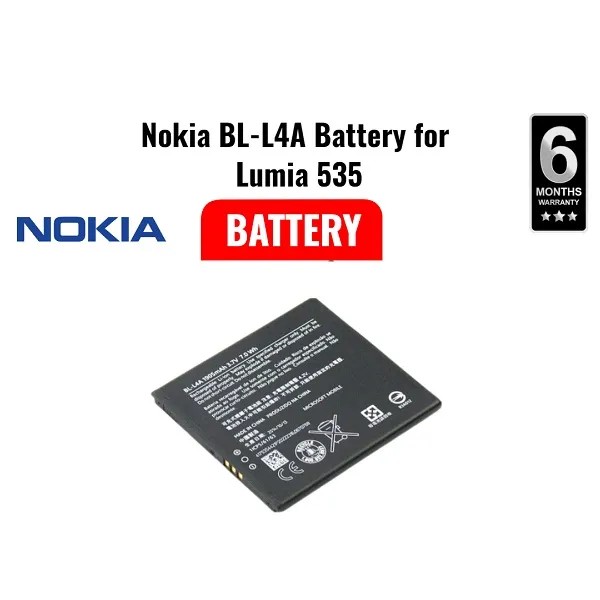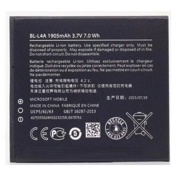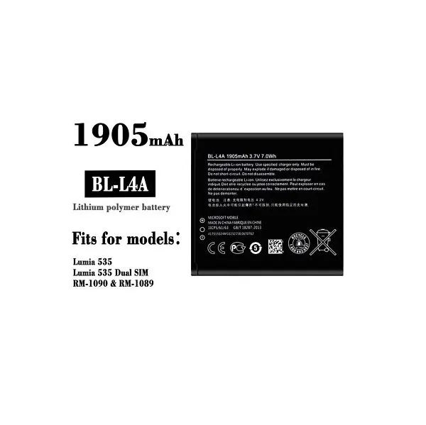 Nokia Lumia 535 Mobile Phone Battery Rechargeable Li-ion Battery Use Specified charger only Voltage: 3.7V Capacity: 1905 mAh 7.0 :Wh Dimentions Models: NOKIA 535 Perfect replaceme... Read More