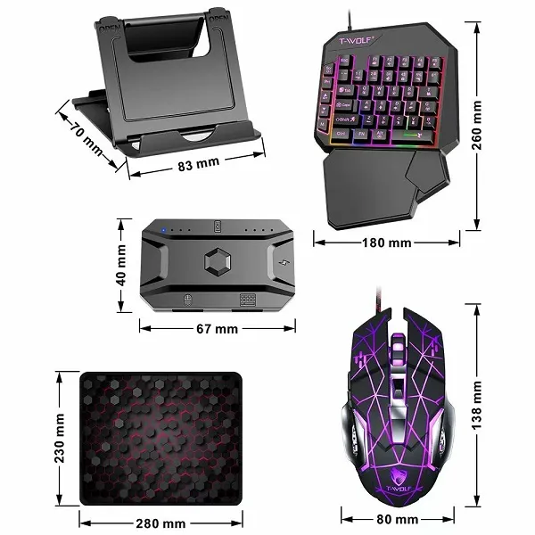 T-WOLF TF950 40 Keys One Hand 5 in 1 Gaming Keyboard USB Wired Mouse Combo Set with Mobile Game Converter and Phone Holder Keyboard Backlit : LED Mechanical : Yes Programmable : Yes Anti-g... Read More