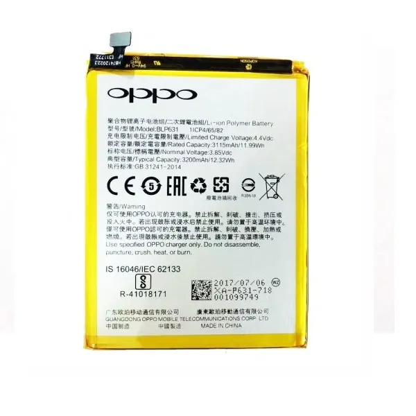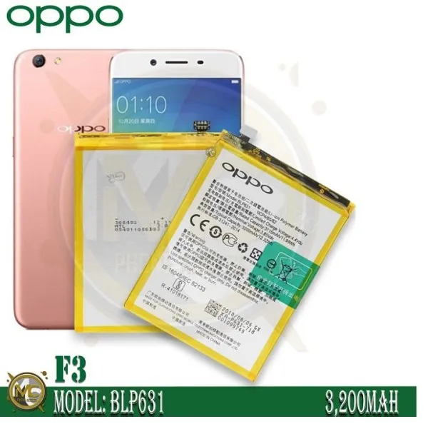 Oppo F3 Mobile Phone Battery (BLP631) F3 Battery (Model: BLP631) Brand Name: OPPO Compatible Brand: Compatible Battery Capacity(mAh): 3200mAh Model Number: BLP631