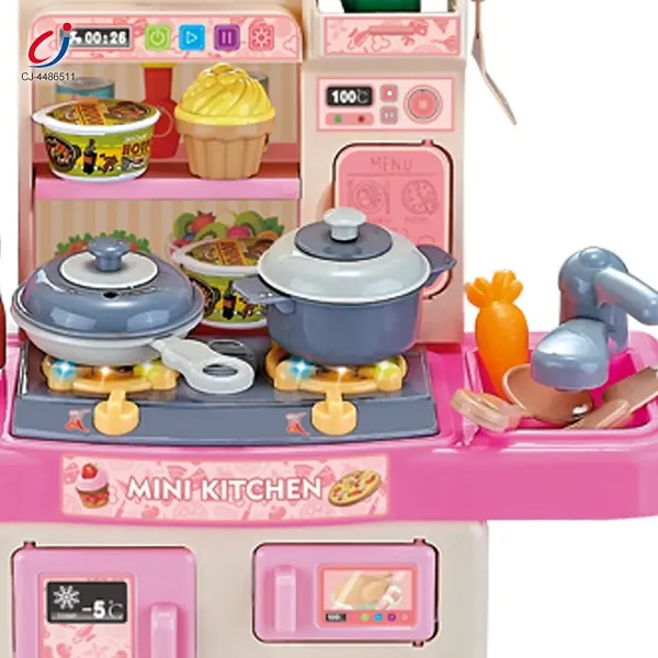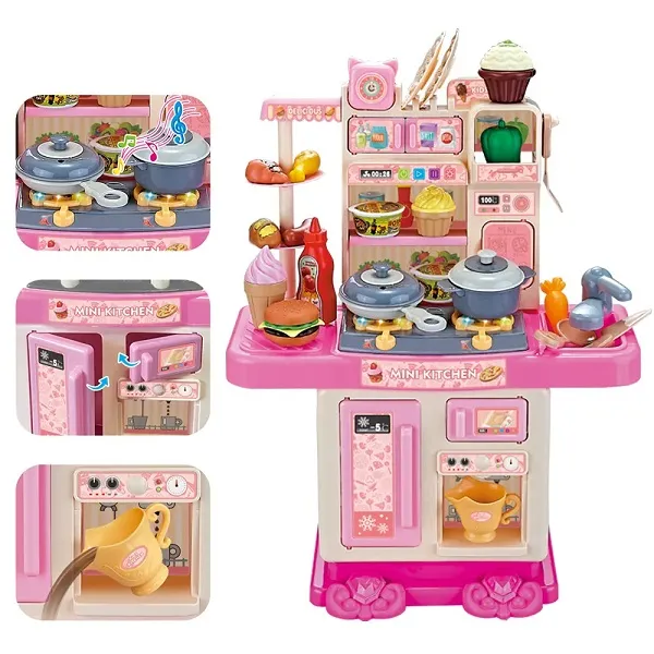 Pretend Play Preschool Kitchen Food Toys Music Lights Simulation Real Kitchen Toy Play Kids Cooking Set (0529)