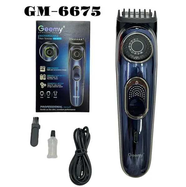 Geemy Rechargeable Electric Hair Trimmer (GM 6675) Name : Geemy GM-6675 Trimmer 45 min Runtime 10 Length Settings (Multicolor) Product Name : Geemy GM-6675 Trimmer 45 min R... Read More