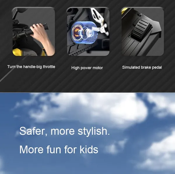 Kids Rechargeable Ride on Electric Motor Bike (MB5719) Material: plastic Color: gray Battery: 12V 5AH Product dimensions 115 x 55 x 72 cm; 10 kg Manufacturer's recommended age 24 mon... Read More