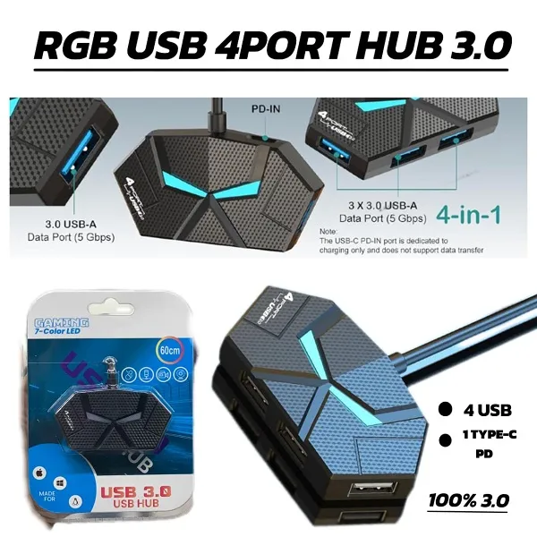 RGB 4 Port USB C Hub 3.0 USB Splitter USB Extender Model : USB A Product Dimensions : 7.62 x 6.1 x 1.27 cm; 30 g Item model number : USB A Operating System : Linux, Win... Read More
