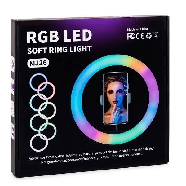 RGB Soft LED Ring Light 10 Inch MJ26 with 7 Feet Stand 360° rotating pan tilt, free adjustment of light compensation angle 10inch Ring Fill light with stand (26cm) The USB port can be us... Read More