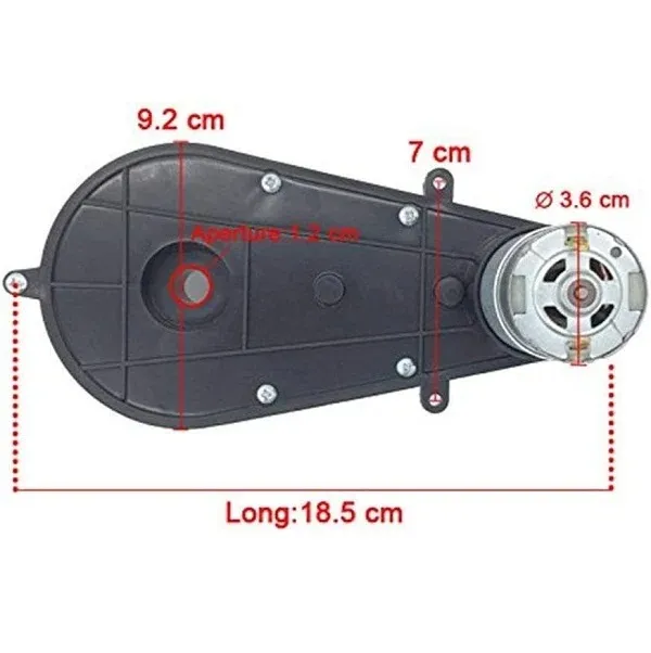 Kids Ride On Electric Cars Motor Gearbox 12V 16000 RPM (SP10) Voltage: 12V Speed: 16000 RPM Colour: Black Length about: 17.5 Motor cog width is 6cm on the longest length Rechargeable b... Read More