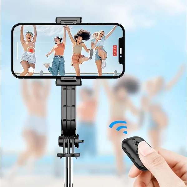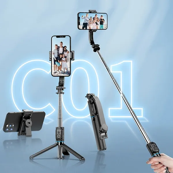 C01 Portable 360-degree Rotating Phone Selfie Stick with Remote Control Mini Split Phone Clip Camera Tripod