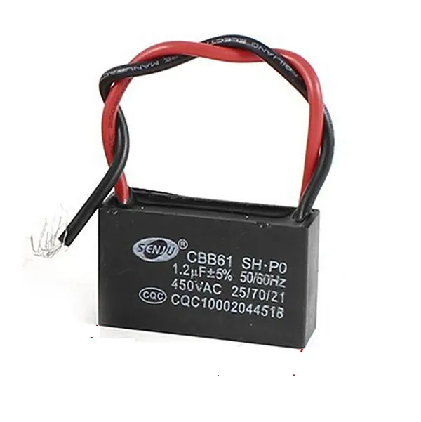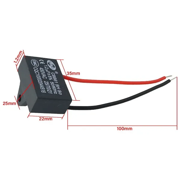 Stand Wall Fan 2 Wire Capacitor 1.2uF Capacitor model : CBB61; Capacitance : 1.2uF Tolerance : +/-5 percent Rated Voltage : AC 450V Frequency : 50/60Hz Wire length:80mm; Size : 37 x ... Read More