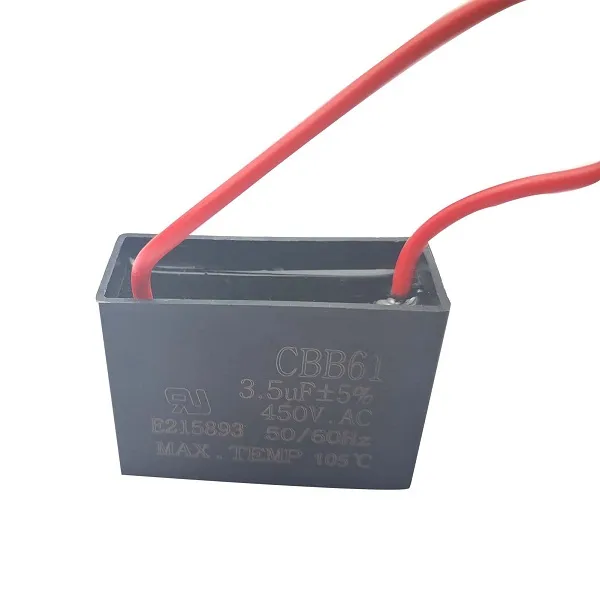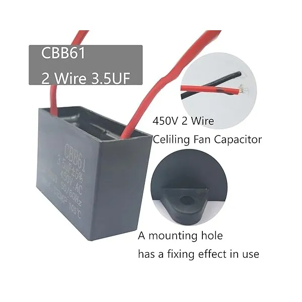 Stand Wall Fan 2 Wire Capacitor 3.5uF Model: CBB61 Material: Polypropylene Film, Plastic Shell Lead End: 2 Wires Tolerance: ±5% Rated Capacity: 3.5uF Rated Voltage: 450V AC Ra... Read More