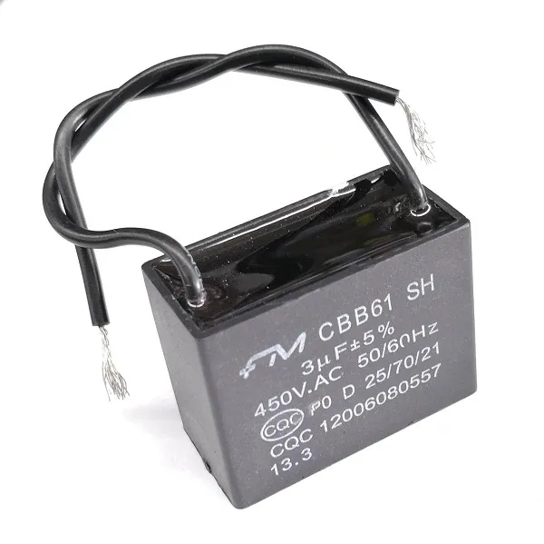 Stand Wall Fan 2 Wire Capacitor 3.0uF Model: CBB61 Material: Polypropylene Film, Plastic Shell Lead End: 2 Wires Wire Color: Red, Black Tolerance: ±5% Rated Capacity: 3uF Rate... Read More