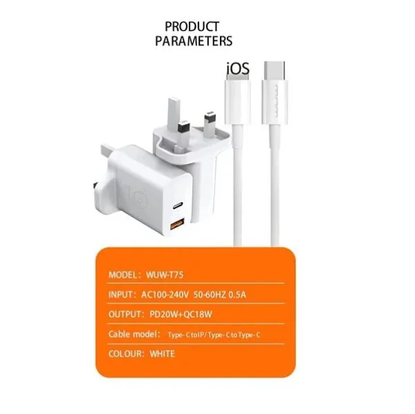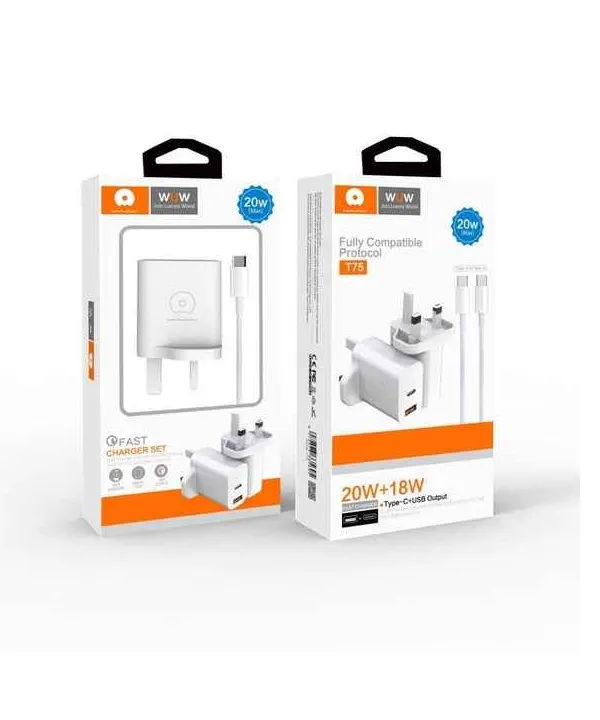 WUW T75 20W Type C+18W USB Fast Charging Output wth Type C to Type C Cable Charger Designed for convenience and performance, this adapter combines a ... Read More