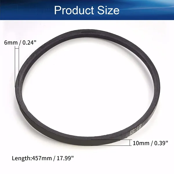 Washing Machine V Belt Rubber Transmission Belt M18 Circumference:17.99 inch/457mm; Width:0.39 inch/10mm ;Thickness:0.24 inch/6mm. Easy installation, small footprint, high transmission efficie... Read More