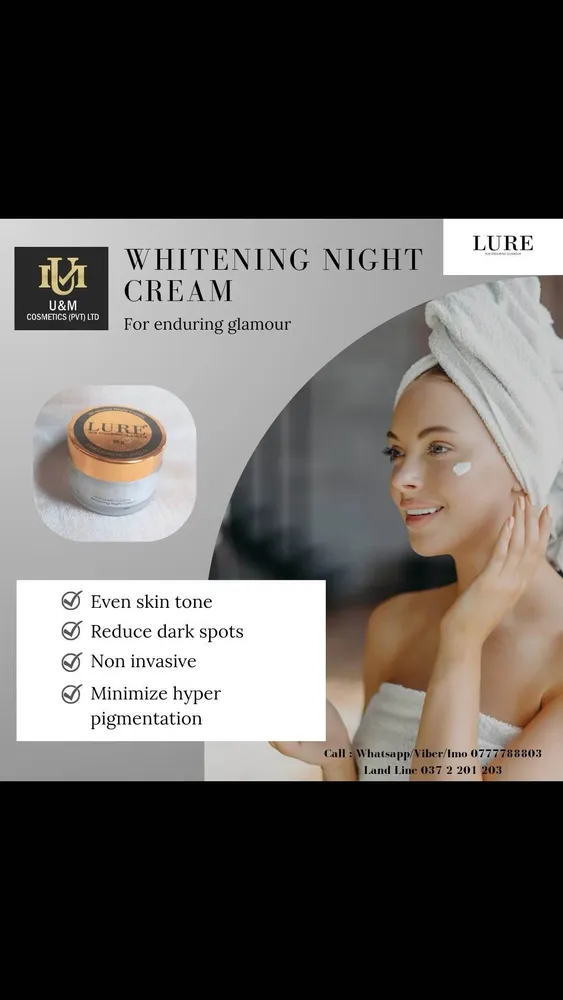 Product details of LURE Whitening Night Cream 25G Good quality Safe product 25G Lighten the skin Reduce Pigmentation UV protecting No side effects No Murcury Description ... Read More