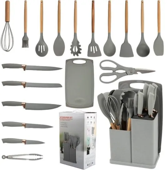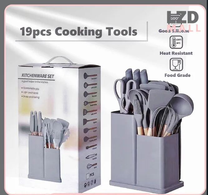 19Pcs Silicone Kitchen Utensils Set with Holder – Heat Resistant Cooking Tools with Wooden Handles for Nonstick Cookware