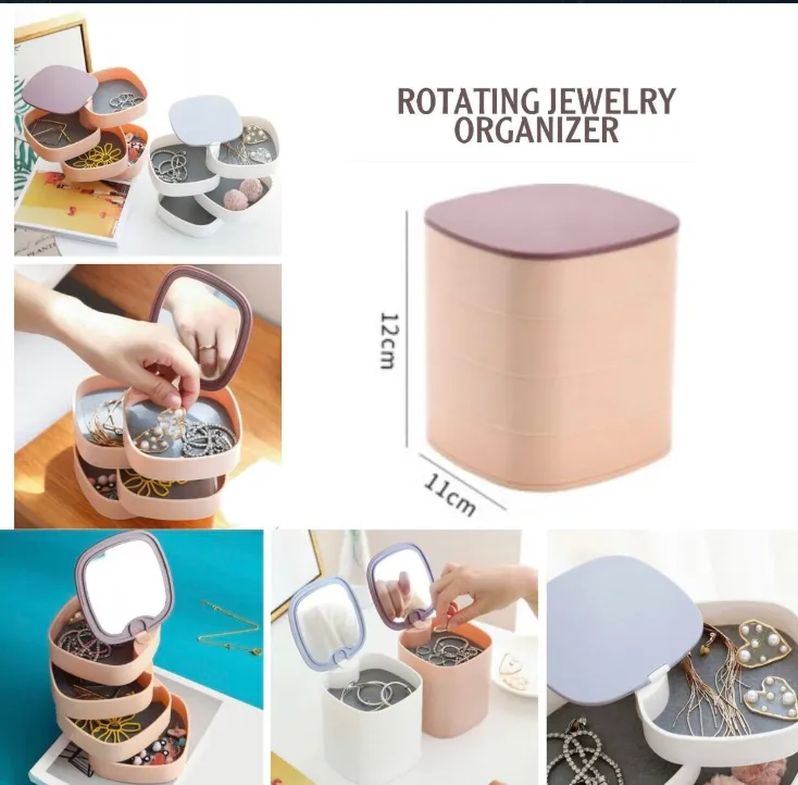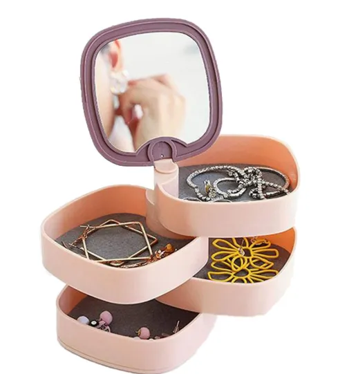 4-Layer 360° Rotating Jewelry Organizer with Mirror – Compact & Stylish Storage Solution