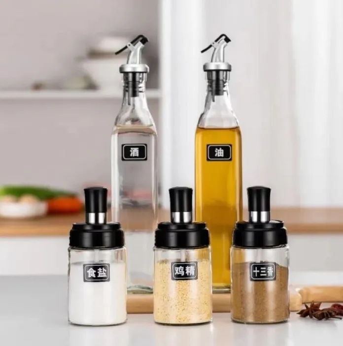 5pcs Oil and Seasoning Pot Set 3 Spices Bottles 2 Oil or Vinegar Bottles