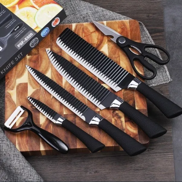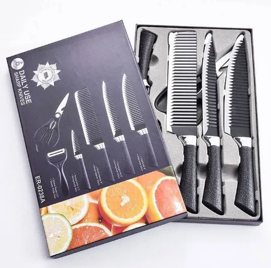 6 Pieces Kitchen Knife Set Peeling Knife Accessories Stainless Steel Leather Handle Non Stick Professional Cutlery With Peeler Scissor Box