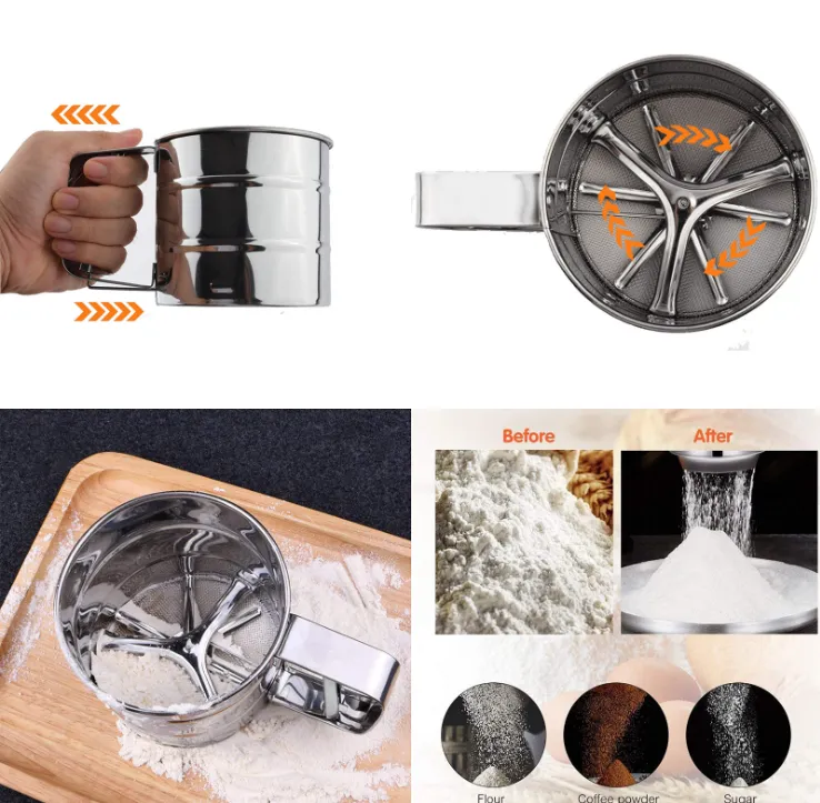 Cupulate Mesh Flour Sifter Stainless Steel Net Sifting Strainer Cake Baking Powdered Sugar Filter