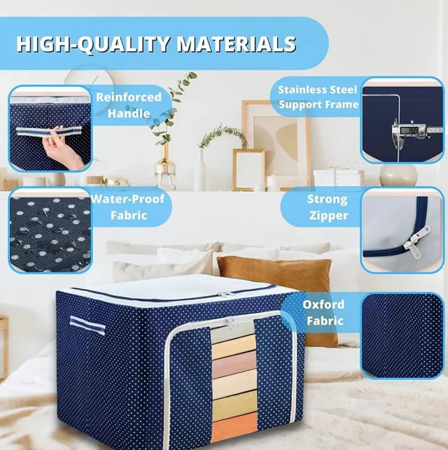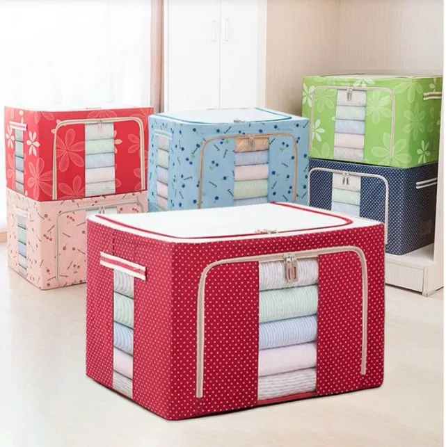 Folding Oxford Cloth Steel Frame Clothing Quilts Pillows Storage Bag Organizer Box with Zipper Lid66l