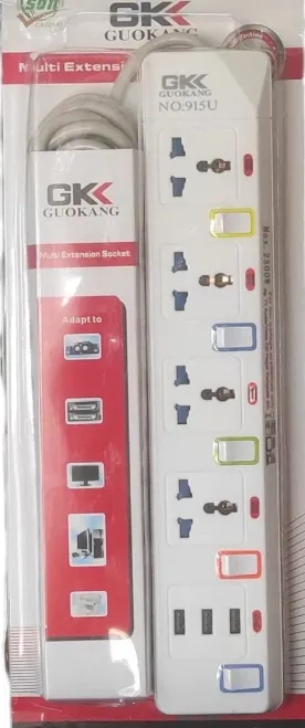 GK Guokang NO-915U Multi Extension Socket with USB Ports (4 Plug + 3 USB) – 2M Cable