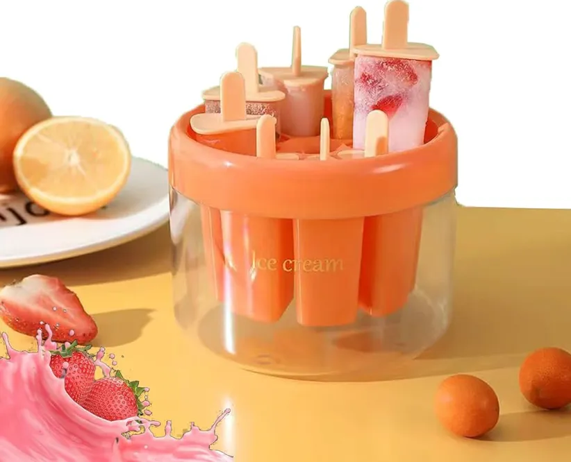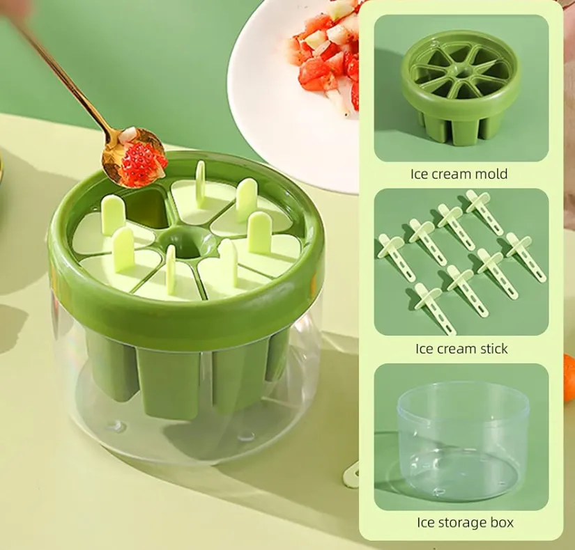 Ice Cream Mold with 8 Popsicle Sticks – Reusable Popsicle Maker with Storage Box for Homemade Frozen Desserts