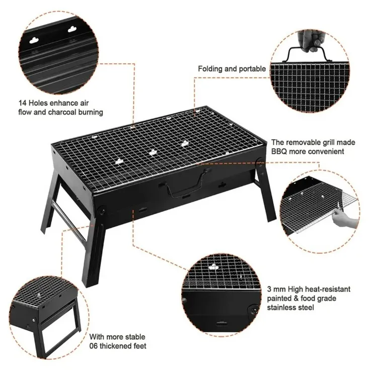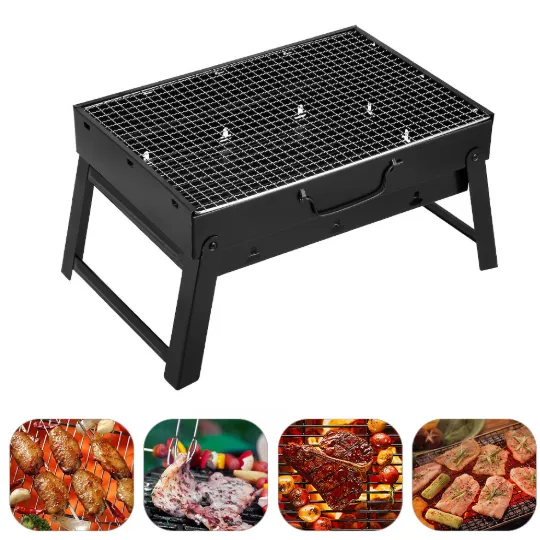 Mini BBQ Grill Portable Small Folding Stainless Steel Grill for Camping Picnic Barbecue Party Family Vacation Black