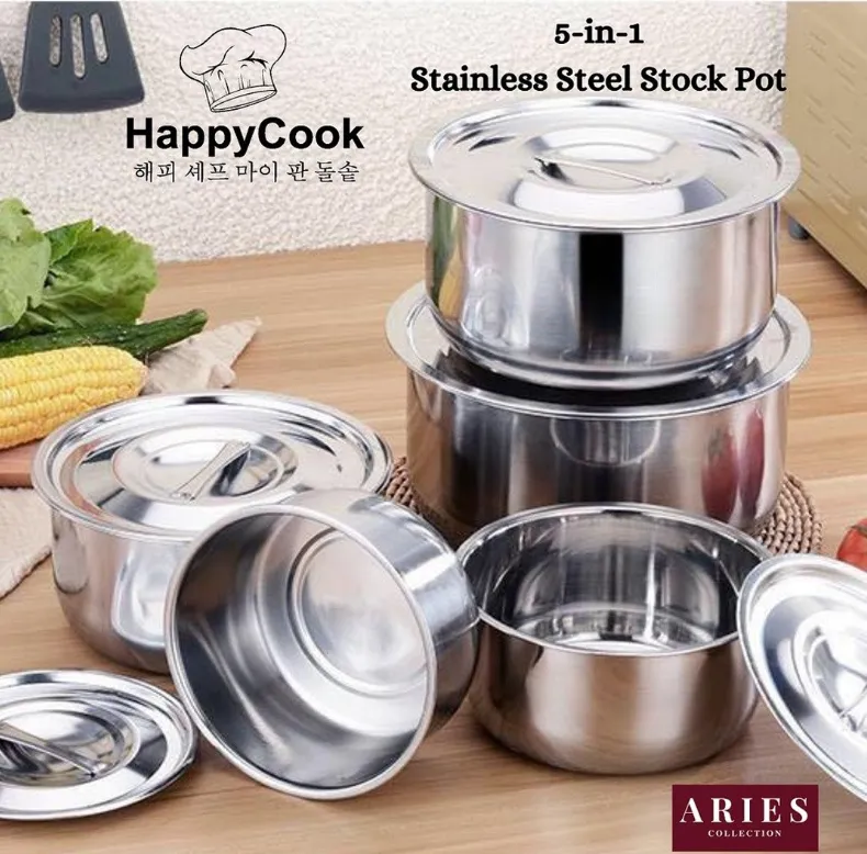 My Home 5 Pcs Stainless Steel Stock Pot Set with Lids