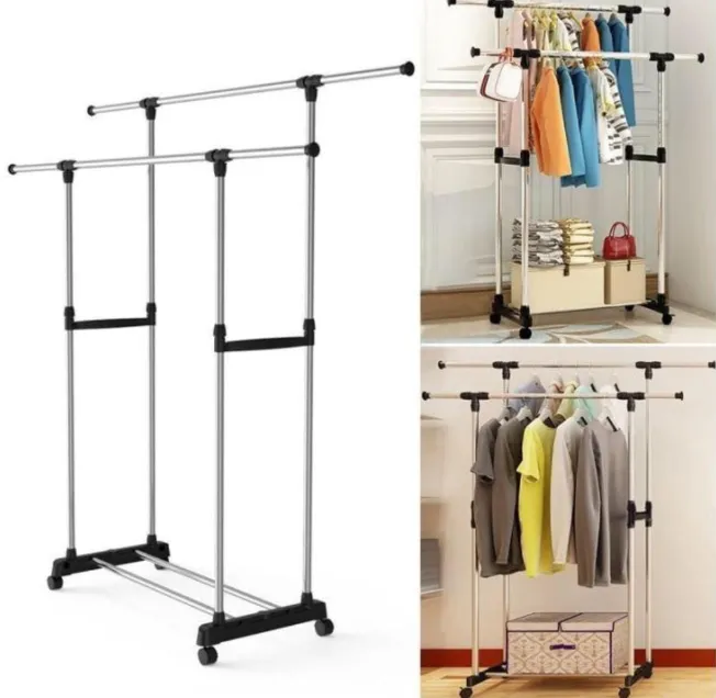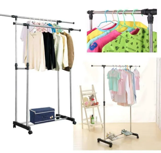Portable Adjustable Cloth Hanger Floor Type Clothes Hanging and Drying Stand Stainless Steel Single or Double Pole