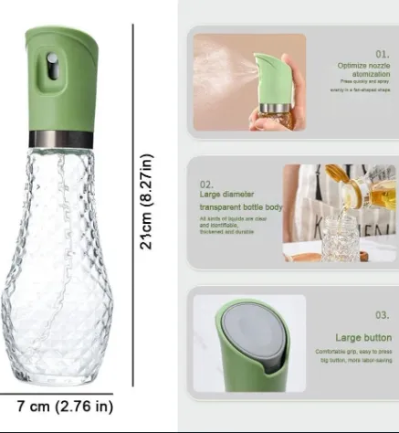 Enjoy mess-free cooking with the Portable Oil Spray Bottle made from high-quality transparent glass. With a 260ml capacity and 21cm height (8.27 inches), this durable sprayer evenly distributes oil fo... Read More