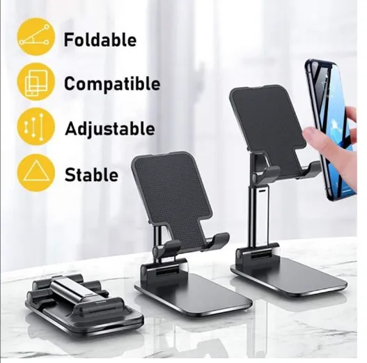 Portable Phone Stand for Desk – Adjustable Foldable Mobile & Tablet Holder for Desktop and Bed, Compatible with All Smartphones