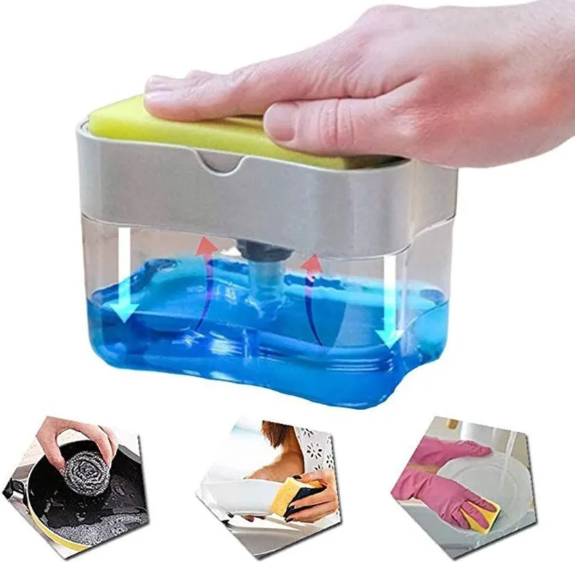 Portable Soap Pump Dispenser and Sponge Holder Convenient Kitchen Dish Soap Dispenser with Integrated Sponge Storage