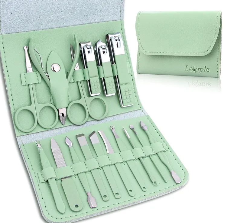 Professional Manicure Pedicure Set 16 PCS Stainless Steel Grooming Kit with Leather Case