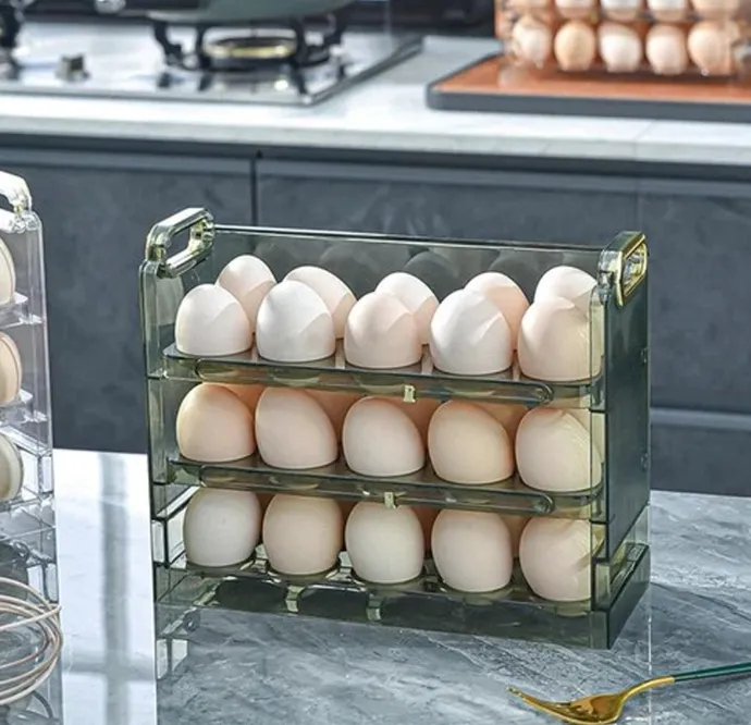 Keep your eggs fresh and organized with this Refrigerator Organizer Egg Storage Box. Designed with 3 transparent stackable layers, it can hold up to 30 eggs securely while saving space in your fridge.... Read More