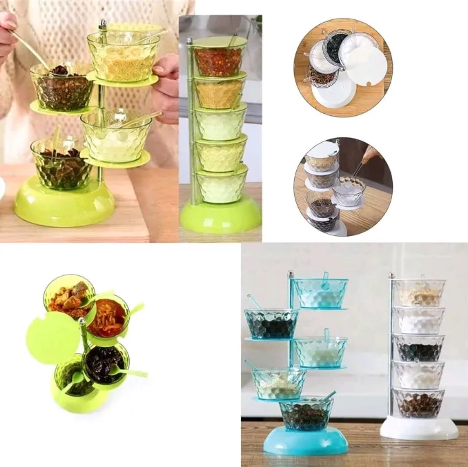 Rotating 5-Tier Kitchen Sugar Salt Pepper Spices Rack Seasoning Storage Box