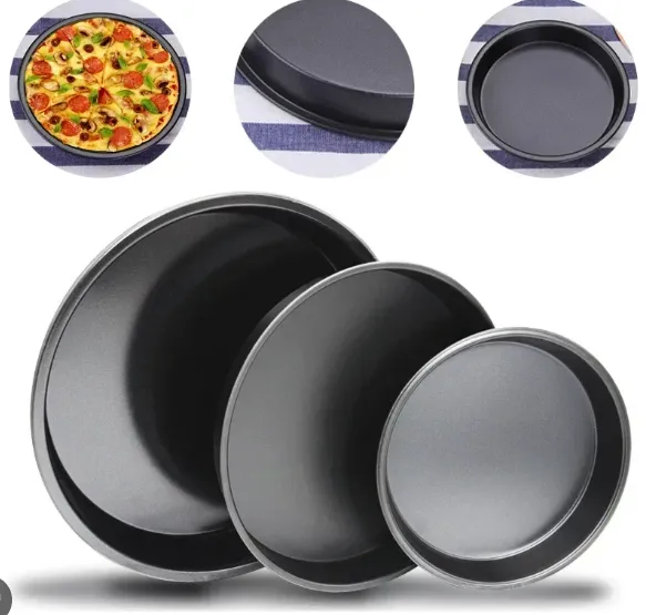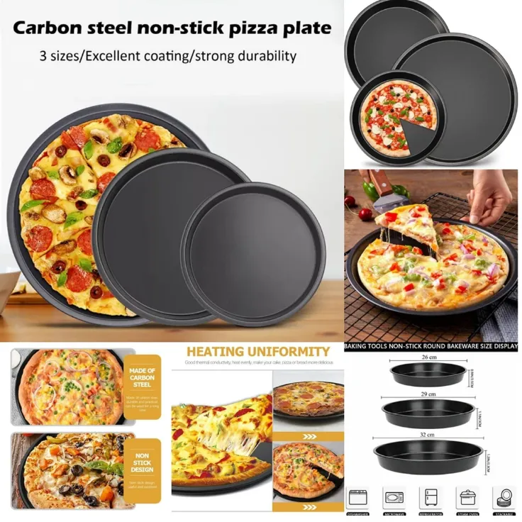 Round Deep Dish Pizza Pan Tray – Non-Stick Carbon Steel Pizza Baking Mold (24cm, 26cm, 29cm)