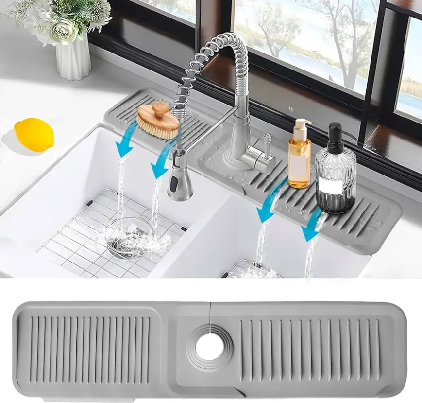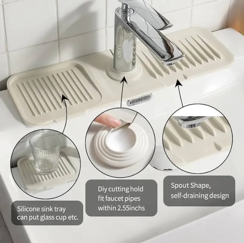 Silicone Sink Faucet Mat Splash Guard Faucet Handle Drip Catcher Tray Sink Protector for Kitchen Sink