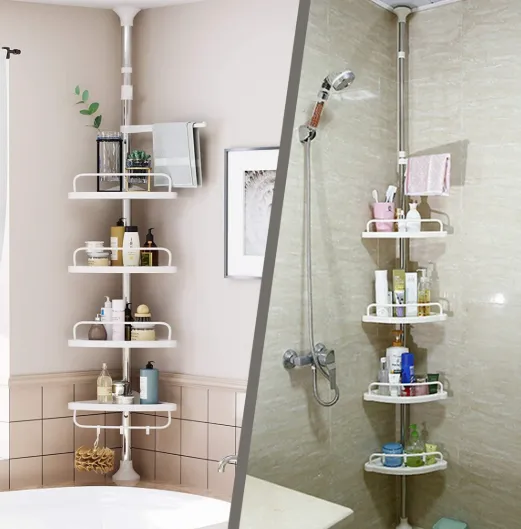 Telescopic Shower Shelf Corner Wall Bathroom Shelf No Drilling 4 Shelves