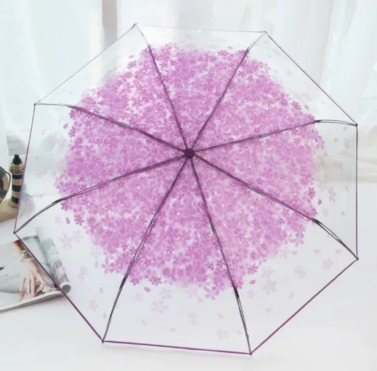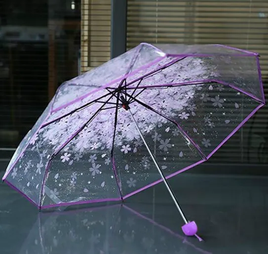 Transparent Clear Folding Umbrella – Cute Korean Mini Cherry Blossom Umbrella | Trifold Japanese Style Sen Series