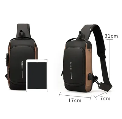 USB Port Chest Sling Bag Anti Theft Password Lock traveling bag for man