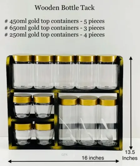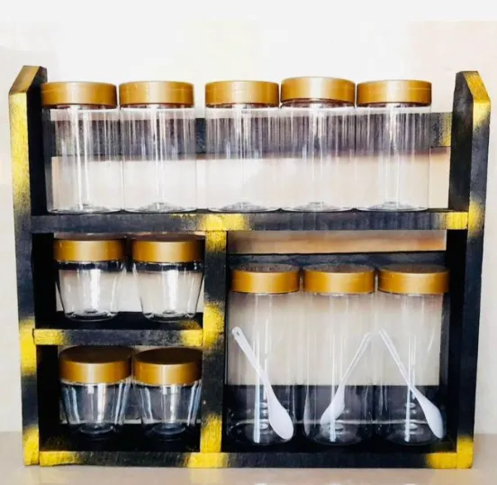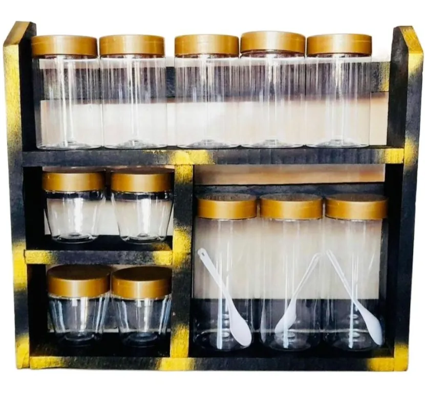 Keep your kitchen stylish and organized with the Wooden Wall Mount Kitchen Spice Rack. This elegant rack comes with high-quality glass spice bottles featuring gold lids, adding a touch of luxury to yo... Read More