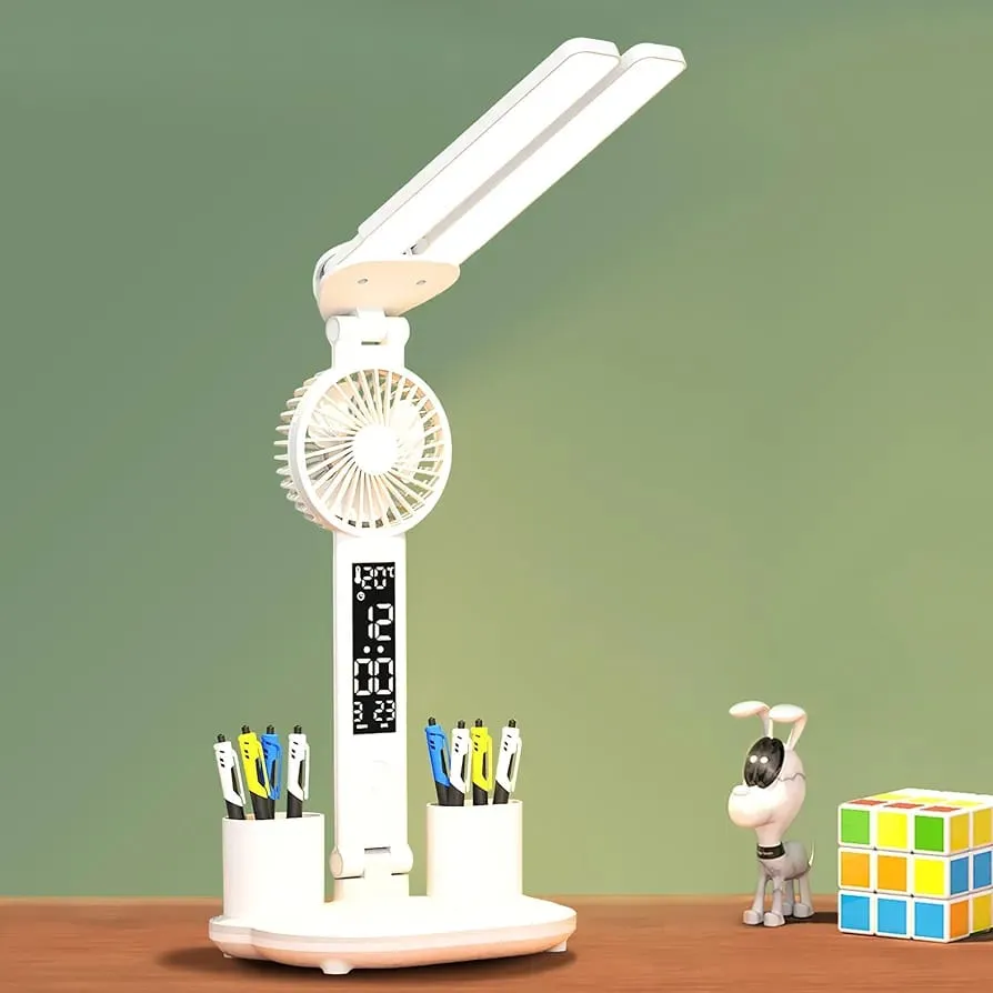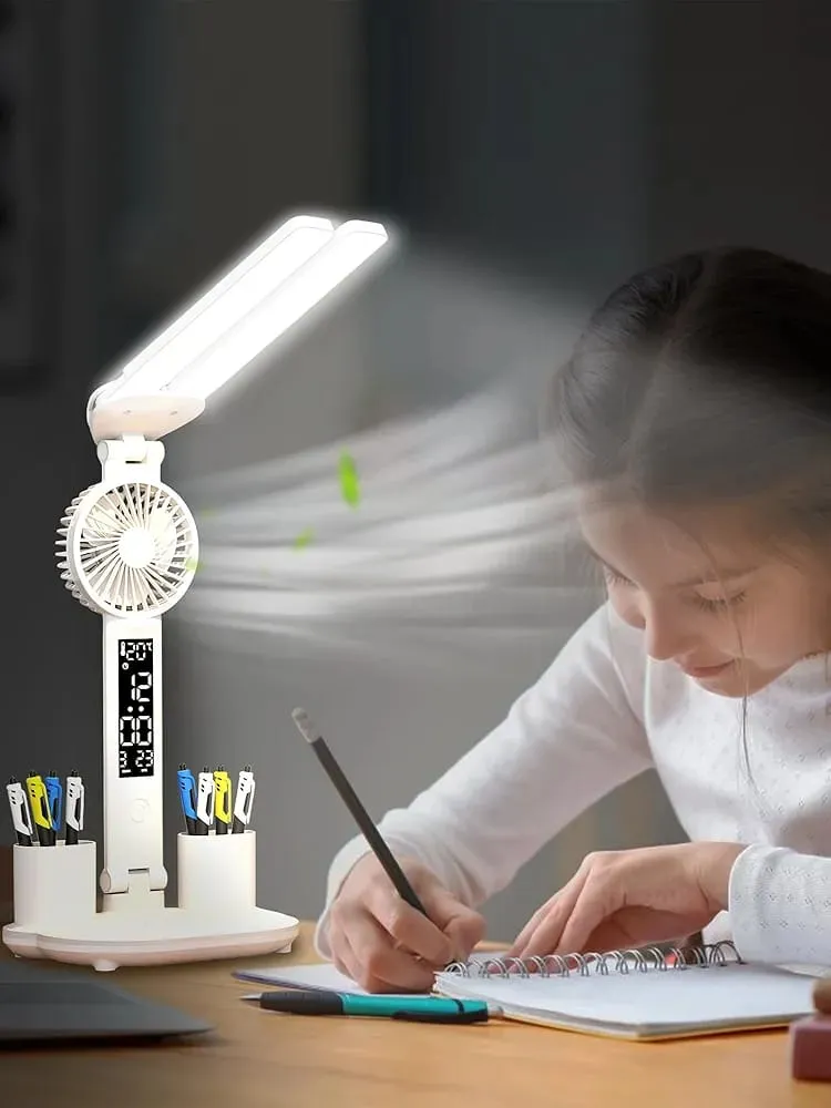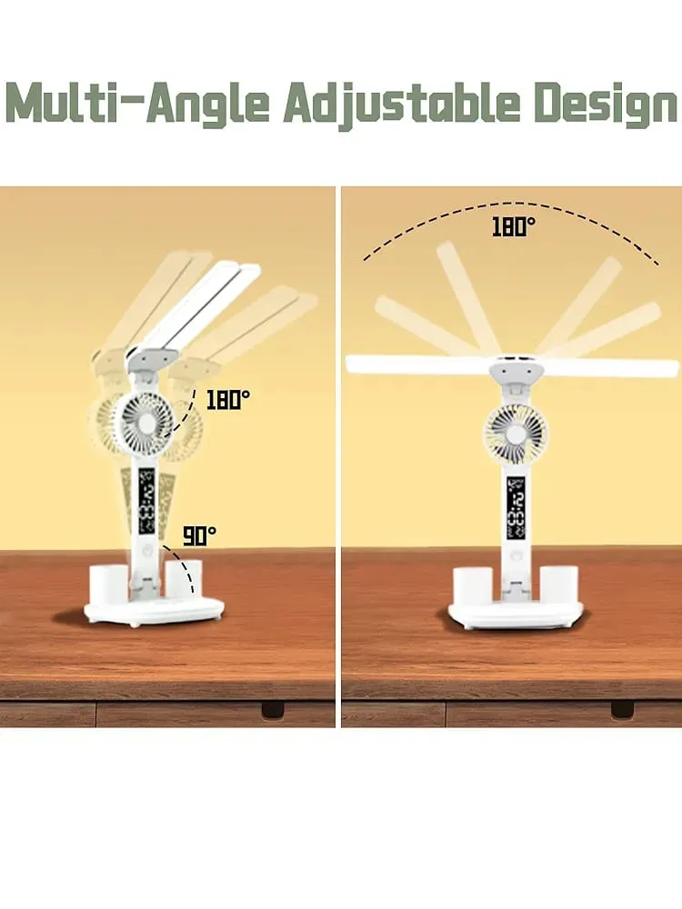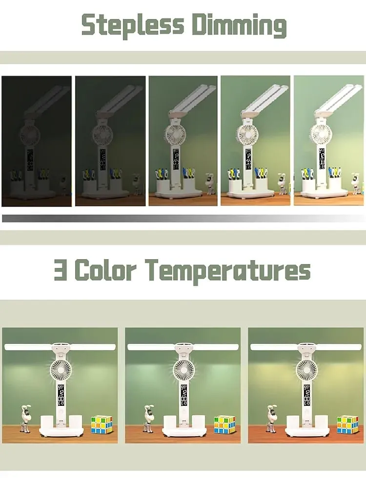 3 in 1 angle desk lamp Rechargeable Table Lamp for Study, Desk Lamp Reading Light with Fan [3 Lighting Modes & 5 Brightness Levels]: Our touch control light with 5 lighting modes (3000K-6000K)... Read More