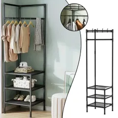 Multi-Function Storage: Features a 3-layer shelving system for shoes, accessories, and folded clothes, with adjustable hooks for coats, scarves, and bags.