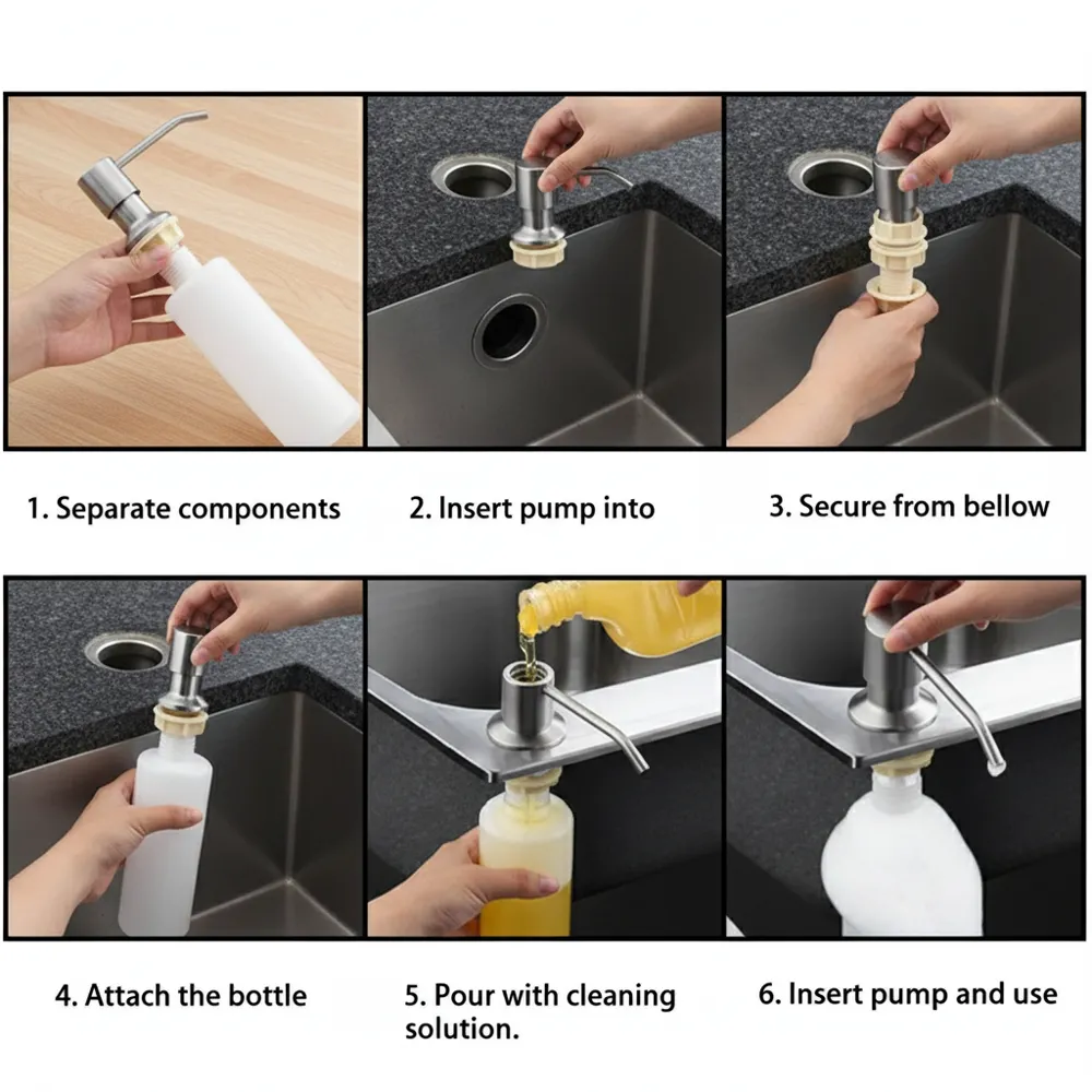 Kitchen/Bathroom Soap Dispenser Liquid Pump Plastic Bottle Stainless Steel 1Hole