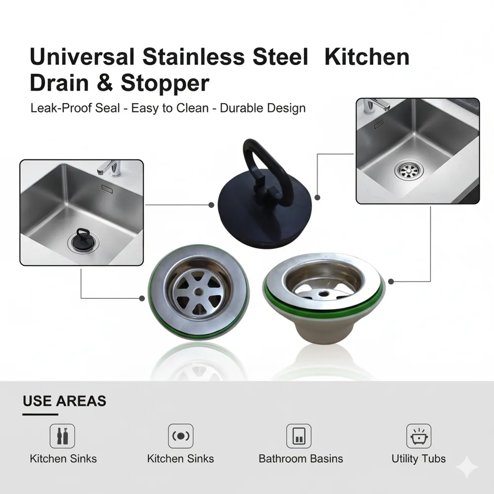 Stainless Steel Sink Strainer & Stopper with Rubber Plug This versatile sink strainer and stopper set is an essential addition to any kitchen. The durable stainless steel basket effec... Read More