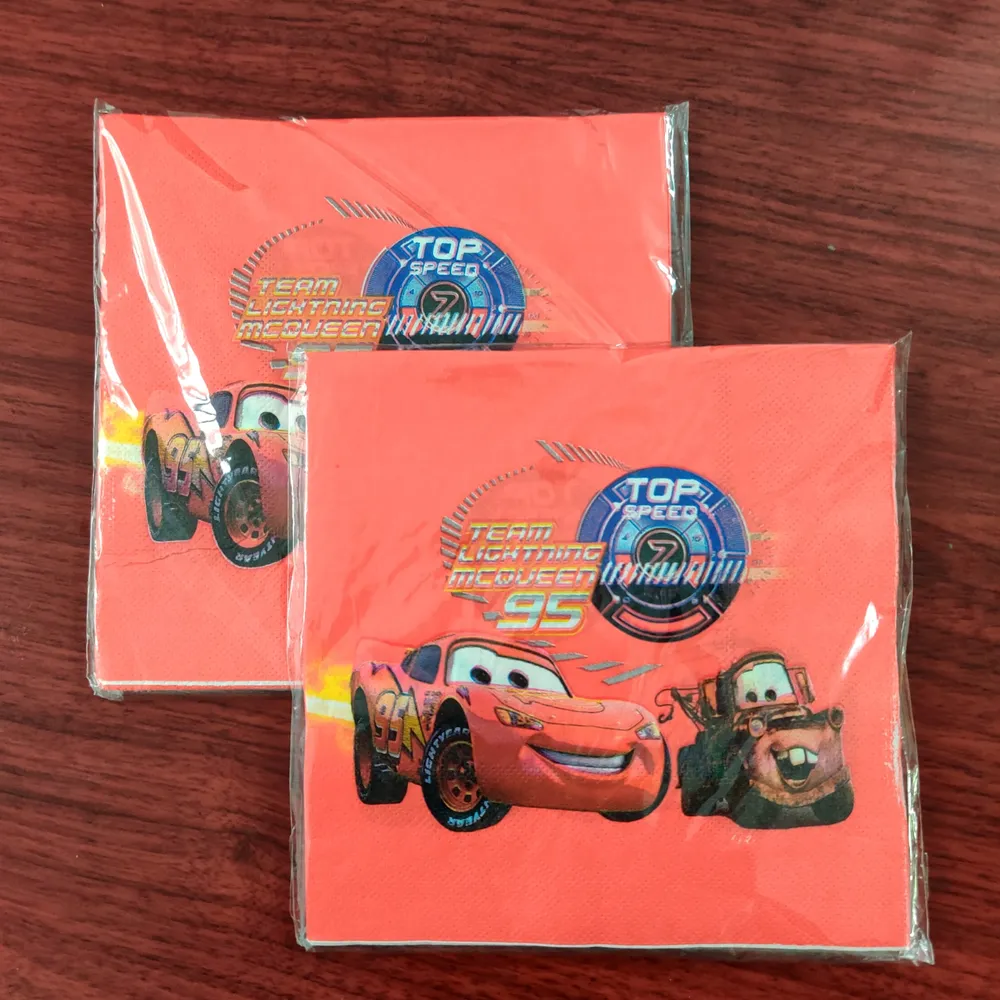 10 Pcs Cars Movie Theme Paper Plates, Paper Cups & Paper Tissues for Birthday Parties - Disney Cars Lightning McQueen