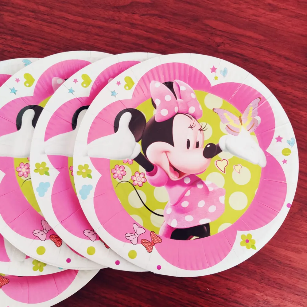 10 Pcs Minnie Mouse Theme Paper Plates, Paper Cups & Paper Tissues for Birthday Parties - Disney Minnie Mouse