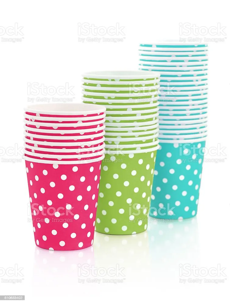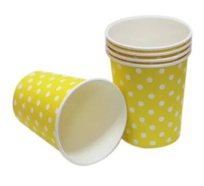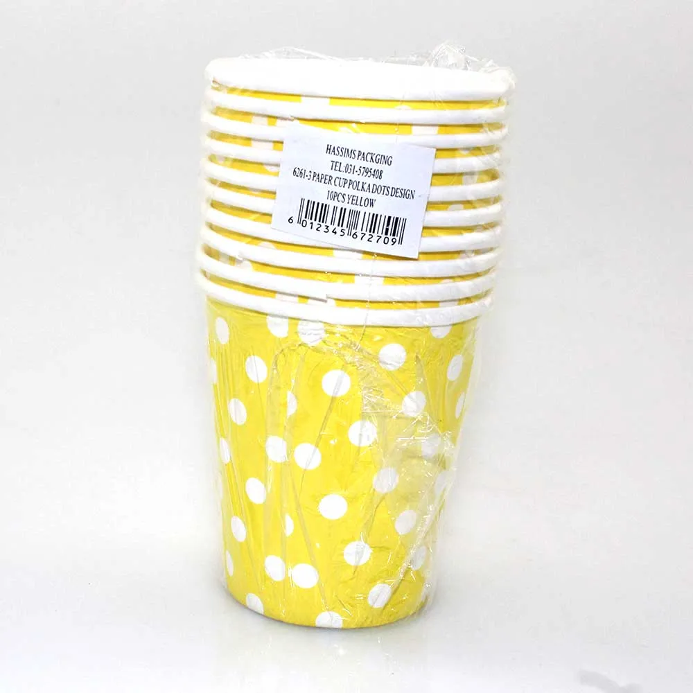 Package of 10 disposable paper cups Colors: Dark Blue, Light Blue, Pink, Yellow Cup size: 8.5cm (Height) Diameter: 7cm (Top) Design: Polka Dots A fashionable choice for a baby shower, bri... Read More