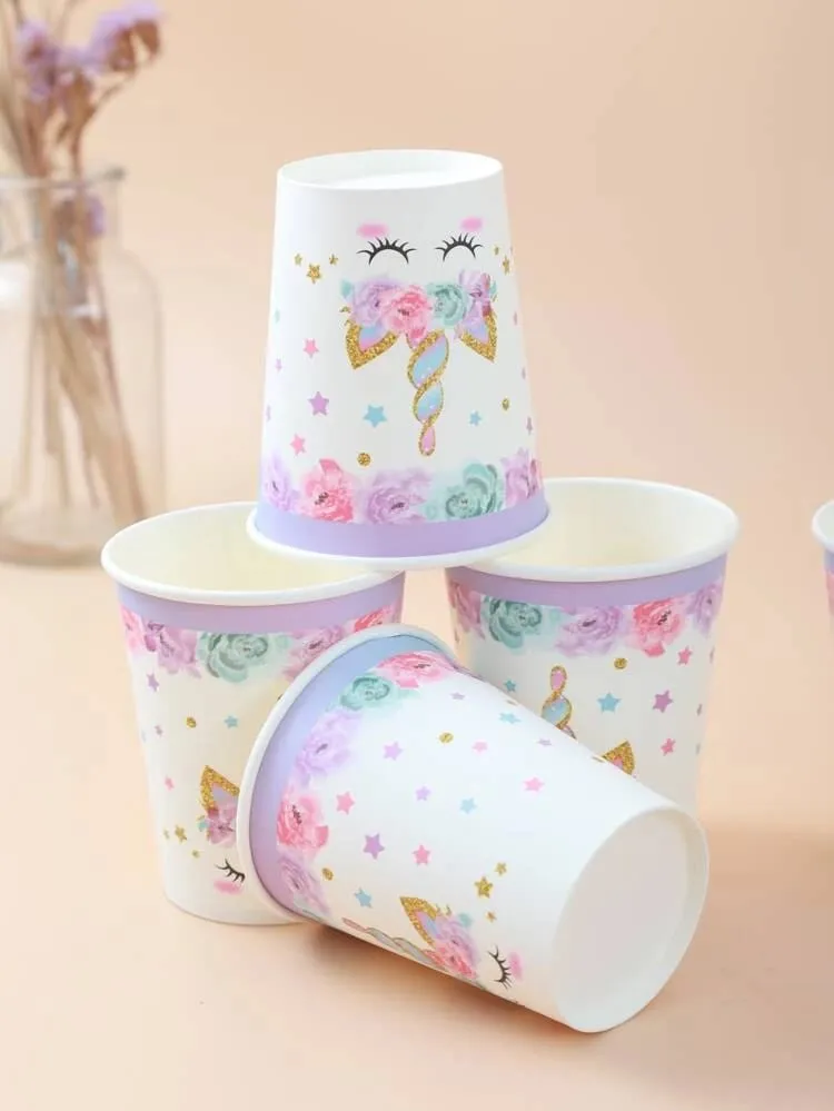 10 Pcs Unicorn Theme Paper Plates, Paper Cups & Paper Tissues for Birthday Parties