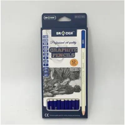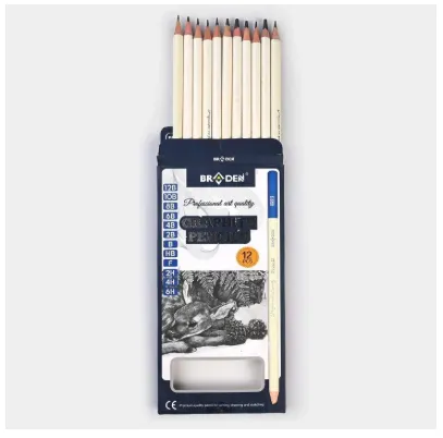 12 Set of Professional Drawing Art Sketch Graphite Pencils Pack - 12B, 10B, 8B, 6B, 4B, 2B, B, HB, F, 2H, 4H, 6H Pencils