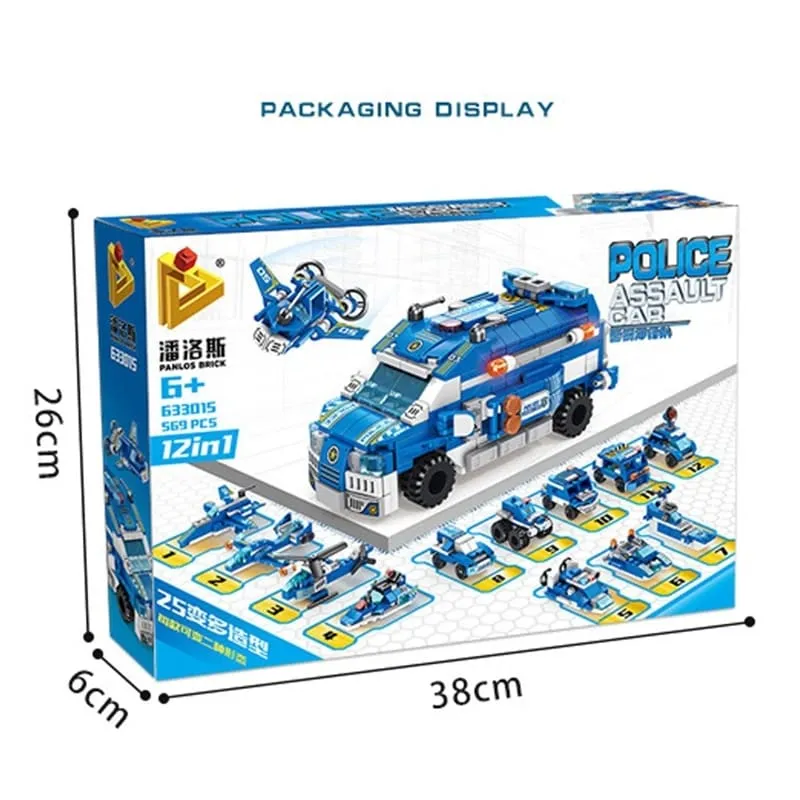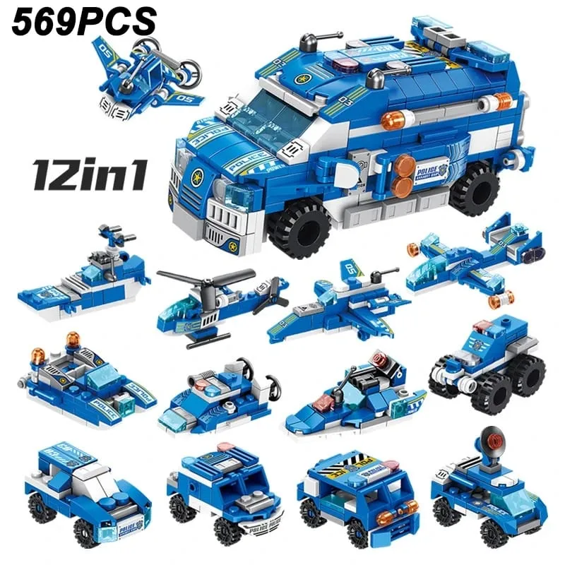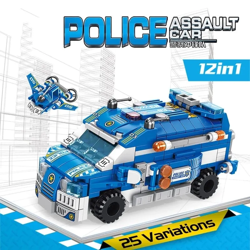 12 in 1 Police Assault Car Lego Set (569 Pcs) 25 Play Styles - Panlos Bricks Building Blocks Set for Kids